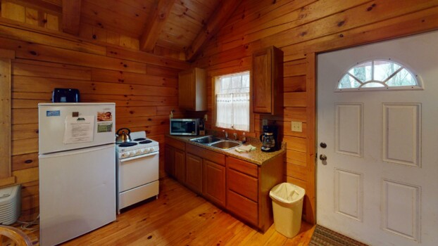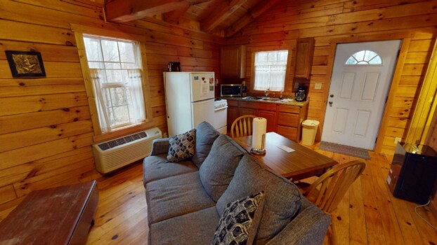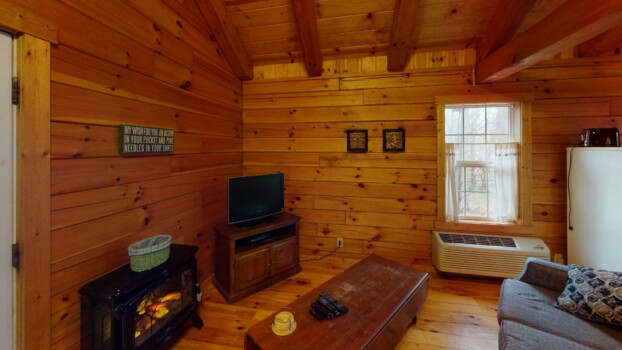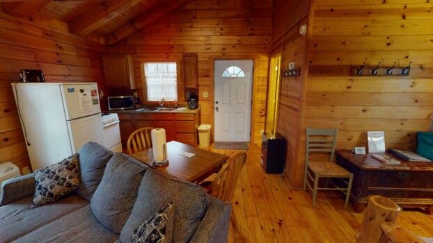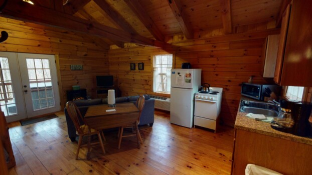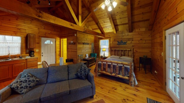 Wren’s Nest is a one-room log cabin quietly secluded at the end of a winding wooded lane. Wren’s Nest provides a wonderful romantic getaway in a cozy nest for two.