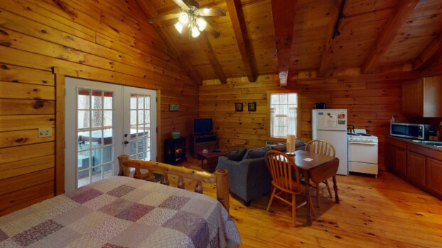 Cardinals Crest is a one room log cabin perfect for a romantic getaway for just the two of you. The cabin is situated in a wooded setting near Ash Cave, Cedar Falls and Old Mans Cave.