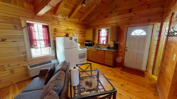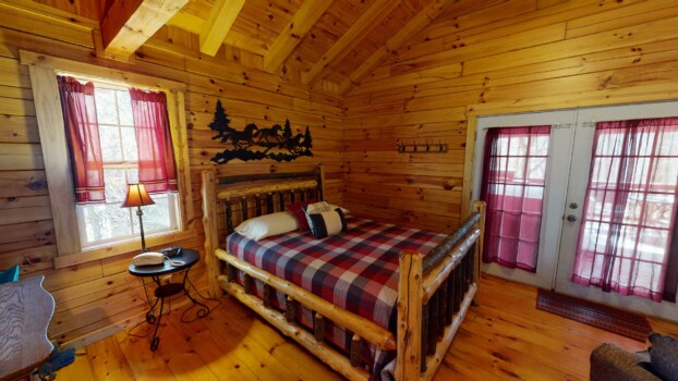 Wren’s Nest is a one-room log cabin quietly secluded at the end of a winding wooded lane. Wren’s Nest provides a wonderful romantic getaway in a cozy nest for two.