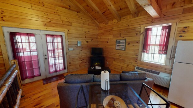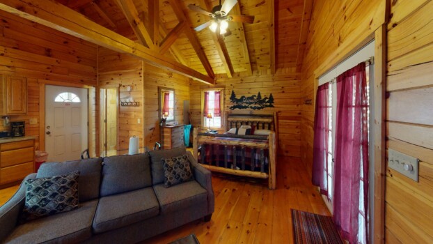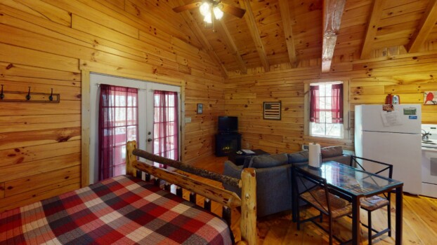 Buckeye fans will adore this private, one room log cabin in a wooded setting. GO BUCKS! Woodland charm, comfy furnishings and modern conveniences complete the ultimate couples’ getaway. Relax and enjoy a Buckeye Football game in the comfort of your cabin.