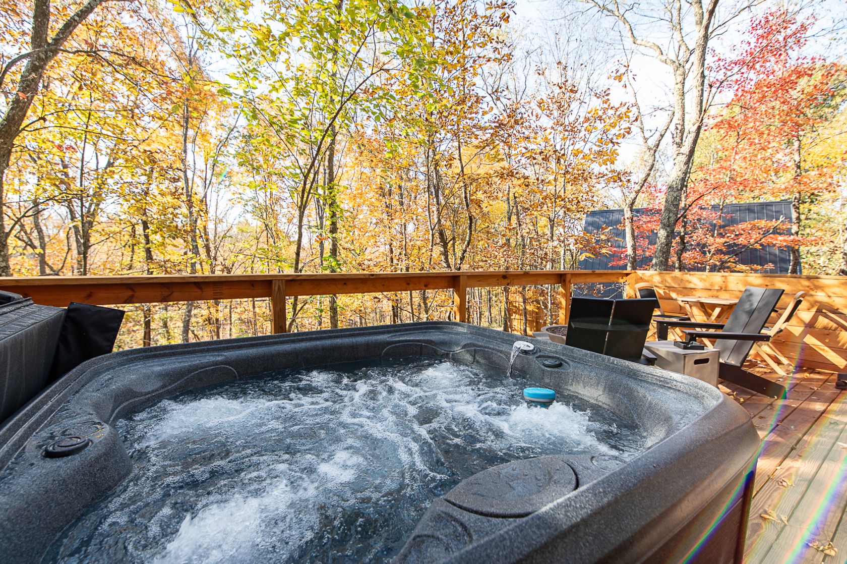 Step outside to discover your private sanctuary—a tranquil hot tub awaiting you under the stars. Whether you're soaking after a day of hiking or simply enjoying a quiet evening, the hot tub offers a perfect way to unwind and embrace the serenity of nature.