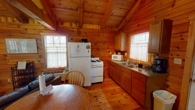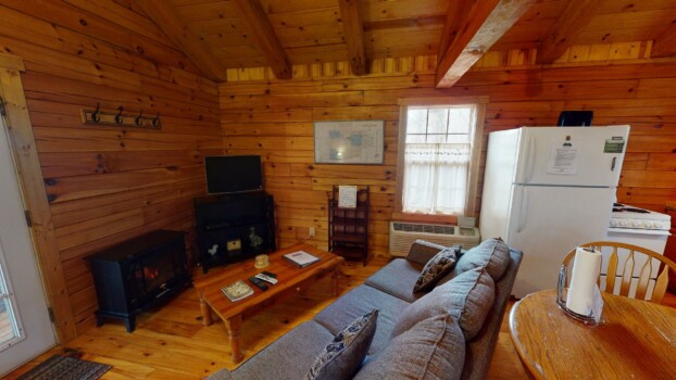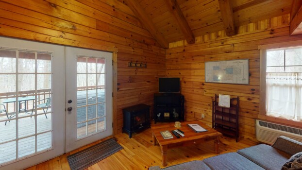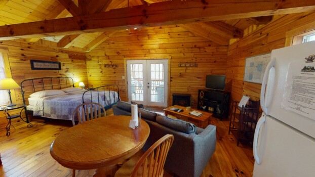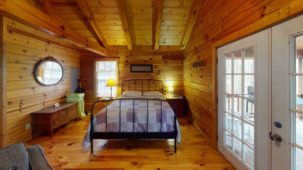 Wren’s Nest is a one-room log cabin quietly secluded at the end of a winding wooded lane. Wren’s Nest provides a wonderful romantic getaway in a cozy nest for two.