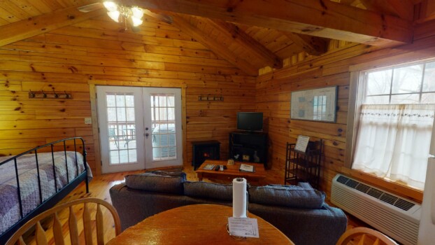 Cardinals Crest is a one room log cabin perfect for a romantic getaway for just the two of you. The cabin is situated in a wooded setting near Ash Cave, Cedar Falls and Old Mans Cave.