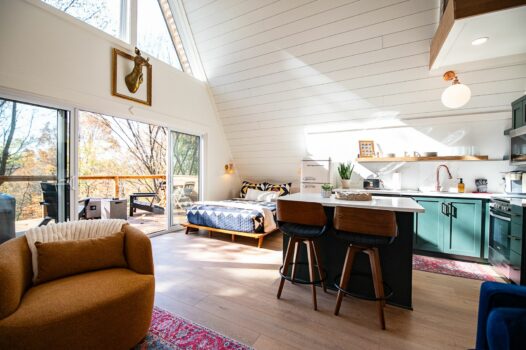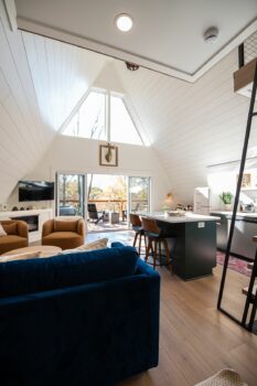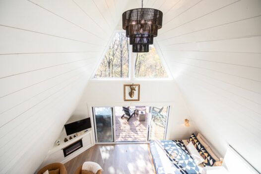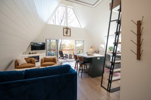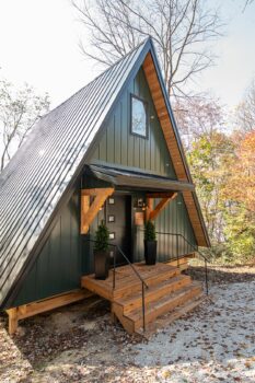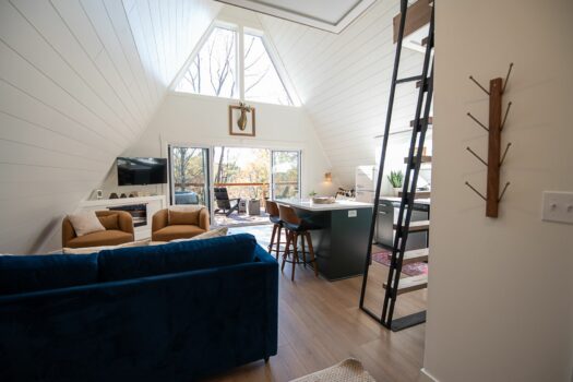 Escape to serenity in this delightful, secluded A-frame studio cabin nestled in the enchanting Hocking Hills of Ohio. Perfectly designed for a peaceful retreat, this charming getaway comfortably sleeps up to four guests with a cozy queen bed and a versatile sleeper sofa. 2 Twin beds also located in the loft with ladder like stairs.